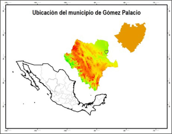 El municipio de Gómez Palacio en el estado de Durango se localiza en la zona Noreste; forma parte de la Comarca Lagunera conurbación de los municipios de Gómez Palacio y Lerdo del estado de Durango, y de Torreón del estado de Coahuila. Se ubica entre las coordenadas geográficas: 25° 32′ – 25° 54′ de latitud Norte y 103° 19′ y 103° 42’de longitud Oeste”.